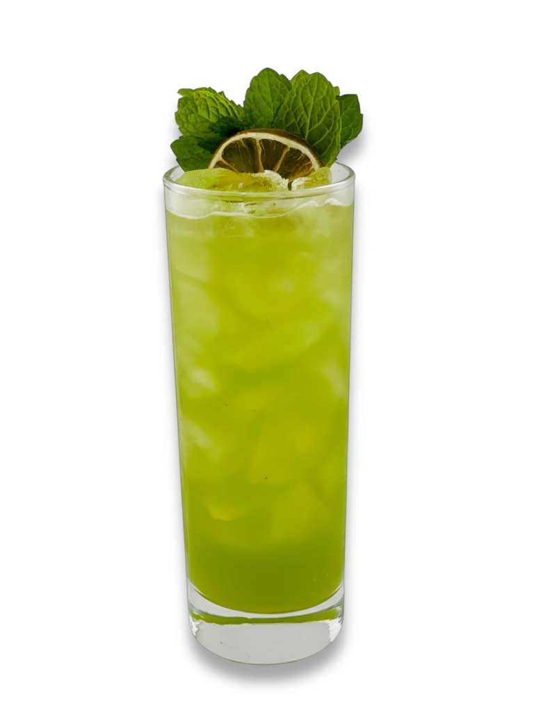 Garnish: Mint bouquet and dehydrated lime slice