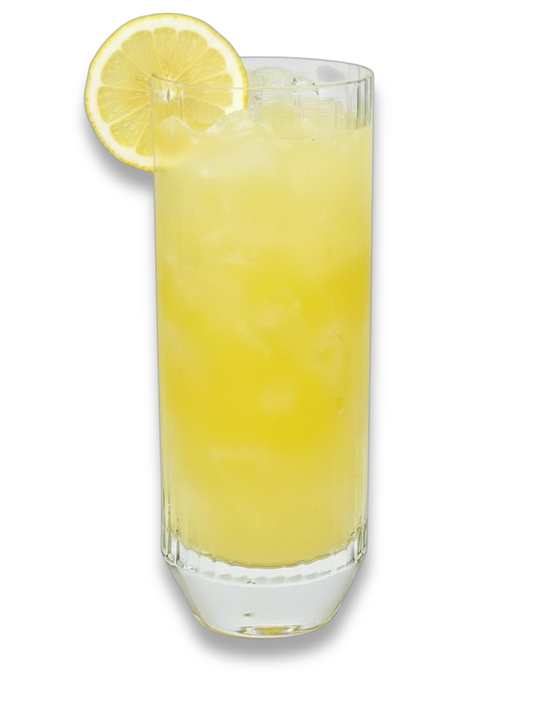 Method: Combine all ingredients into a mixing tin with ice and shake. Double strain over ice and top with soda water.